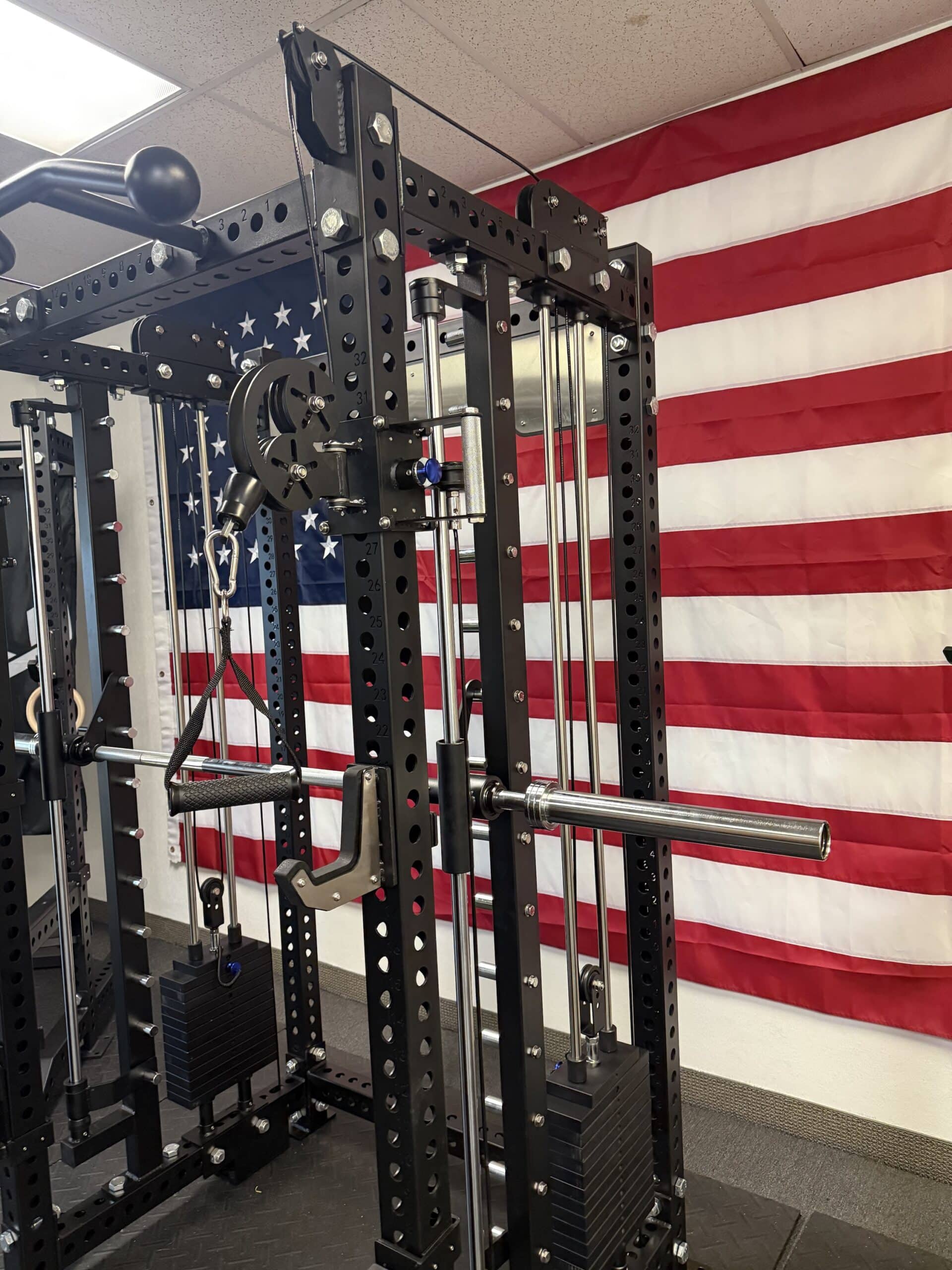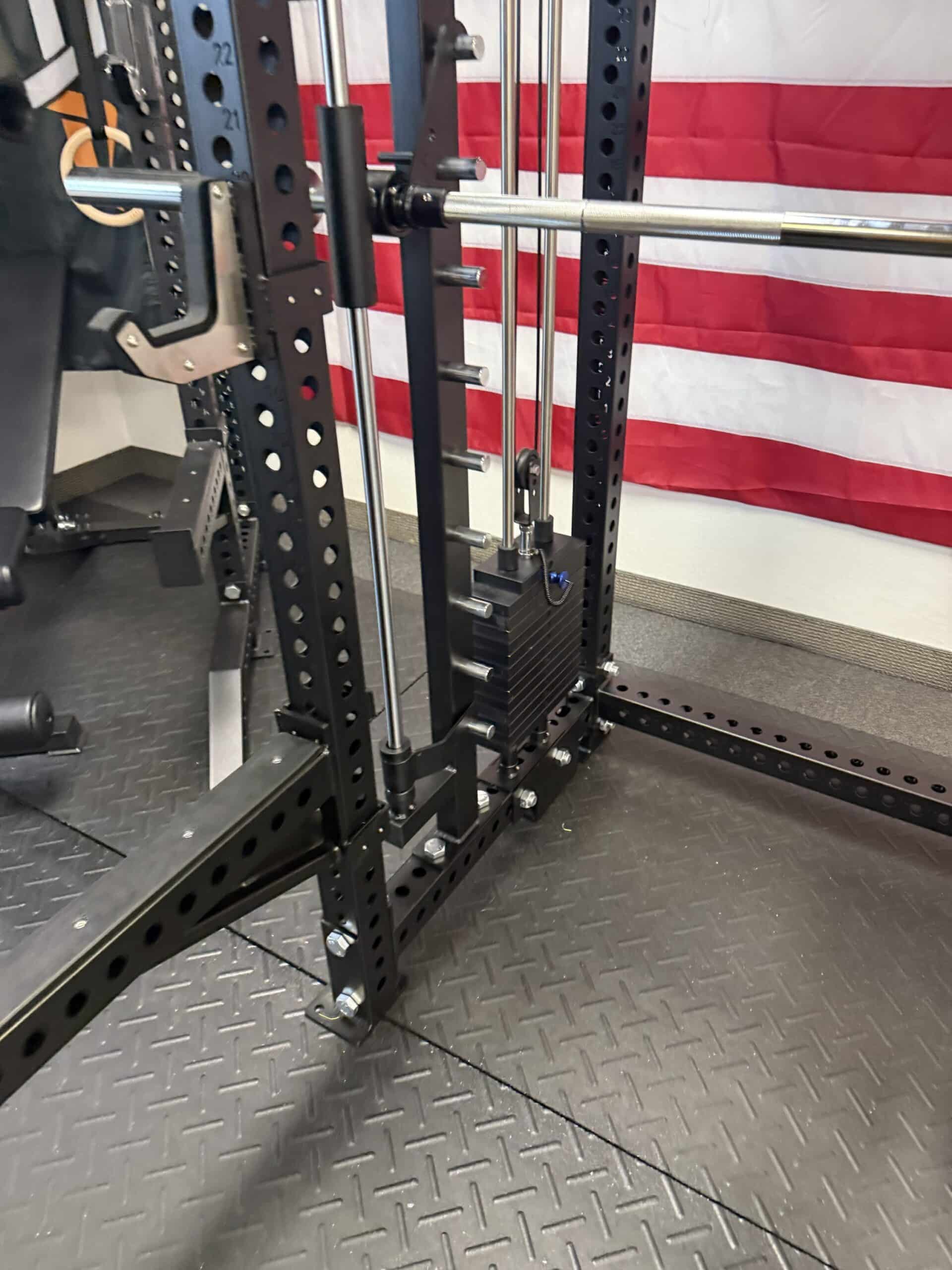 - Width: 51” (86” with Smith machine bar included)