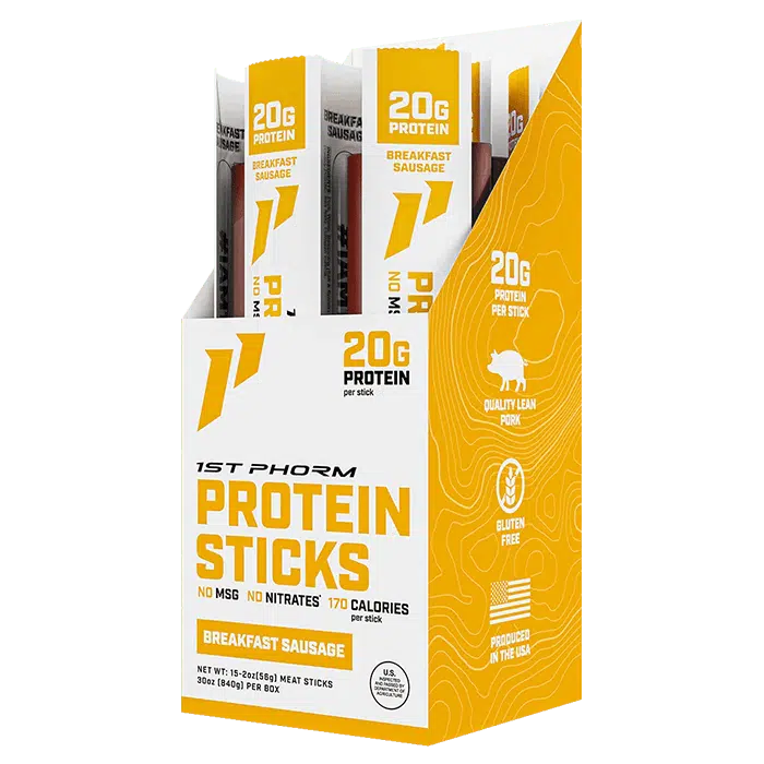 All it takes is just one bite to taste the difference in 1st Phorm’s high-protein meat sticks. It doesn’t matter what your goal is – lose weight, gain muscle, or be healthier, consuming more protein throughout the day is vital! Our protein sticks are made with the highest quality lean beef and pork available, and raised, butchered, processed, and packaged in the heartland of America. All of our amazing flavors are packed with protein for an incredible snack when you’re on the go.
