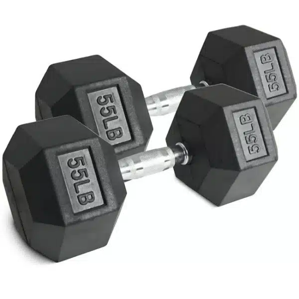 The rubber hex dumbbells feature an ergonomic grip to create a more comfortable feeling in hand during weight training sessions.